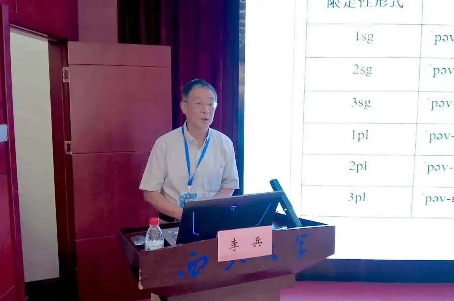 李兵教授的报告“瓦罕塔吉克语动词词干基本形式的推导”,以瓦罕塔吉克语动词词干所呈现的多个语音形式为研究起点,在词库音系理论框架下构拟了动词词干的底层形式,勾画了从底层形式到基本形式的推导过程。李兵教授指出,动词词干基本形式是可分析的,是词干语素的表层形式,是形态成因导致的音系效应。