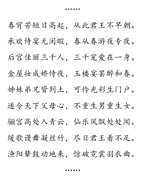 “春宵苦短日高起,从此君王不早朝”和“渔阳鼙鼓动地来,惊破霓裳羽衣曲”四句来源于白居易的七言古诗《长恨歌》。